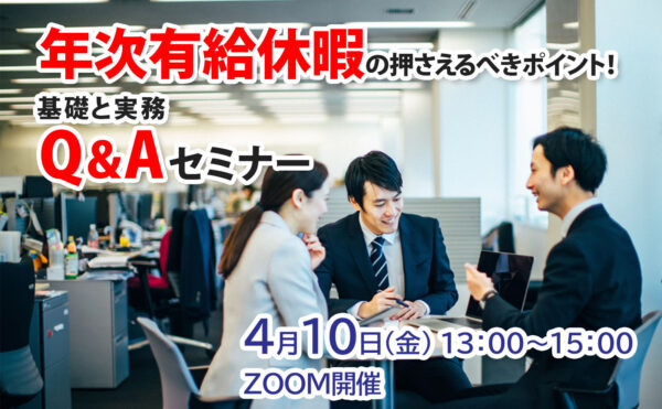 NEW 人事労務セミナーyouten 年次有給休暇の押さえるべきポイント! 基礎と実務Q&Aセミナー※外部の予約サイトに移動します。 本セミナーでは「年次有給休暇」をテーマに、総務・人事ご担当者様から日頃多くいただく実務上のご質問を中心に解説いたします。 制度の基本から実務で迷いやすいポイントまで、具体例を交えながら現 […]