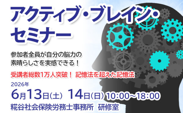 NEW 能力開発セミナーyouten [6月開催]アクティブ・ブレイン・セミナー※外部の予約サイトに移動します。 支持されつづけている3つの特徴 セミナー後、すぐに実践していただける記憶法をお伝えします。 こんな方におすすめ 『なかなか仕事が片付かない』『営業成績が上がらない』『言いたいことが伝わら […]
