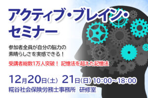 能力開発セミナー 定期サーバーメンテナンスを実施しますので、下記の時間帯はお申し込みできません。日時:10月16日(木)22:00~0:00 SBTメンタルコーチ資格講座 3級[12月開催] 講演「夢実現の法則」のご案内[12月開催]アクティブ・ブレイン・セミナー